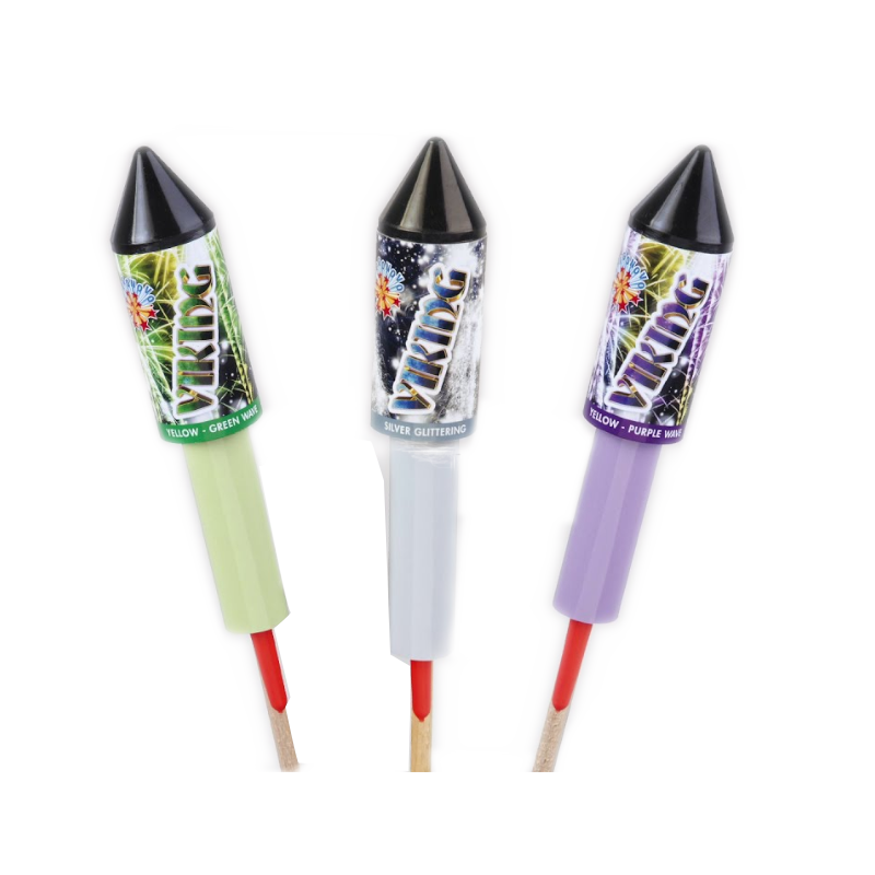 Assortimento 12 razzi con scia oro crackling/stelle viola/argentolampeggiante/verdelampeggiante
