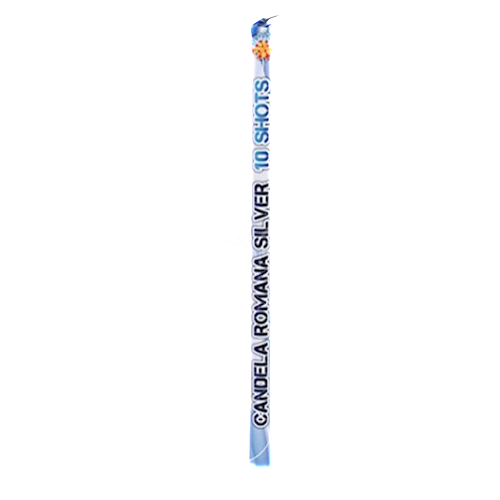 Spettacolo 36 lanci calibro 25 mm con code di drago argentato che si intersecano ad aperture di stelle variopinte di particolare persistenza.