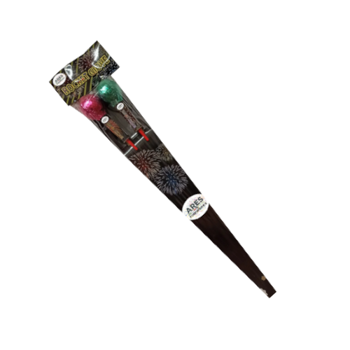 Razzi assortiti con scia oro con apertura crackling/ rossa, argento lampeggiante/blu e time rain, rossa verde/gialla e verde lampeggiante.