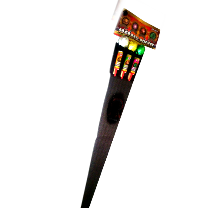 Assortimento 6 razzi a sfera senza dispersione di plastiche. Effetti: onda rossa e palma argento , onda verde palma argento, onda viola palma argento, oro variante a rosso, oro variante a blu, stelle viola e argento glitter.